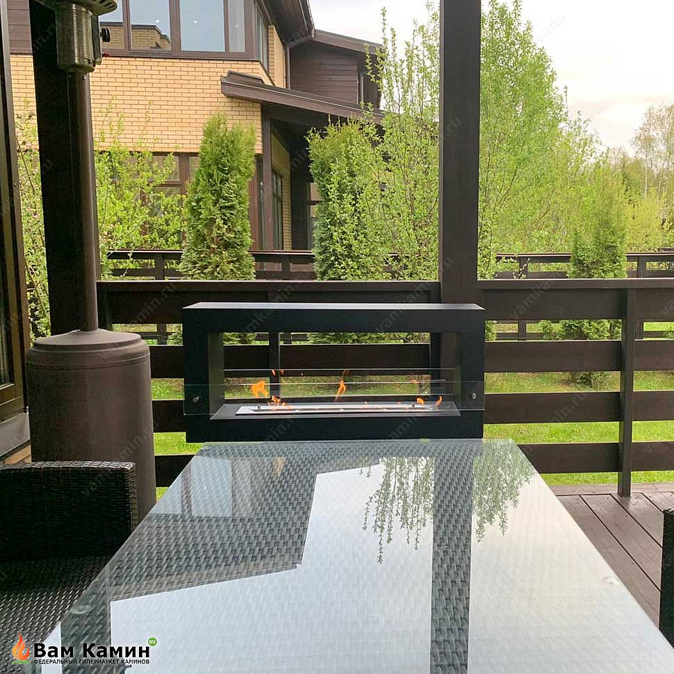 Биокамин SteelHeat FRAME ONE 1000 черный на веранде